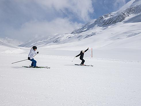 Divertimento invernale sul ghiacciaio della Val Senales, nell'hotel più alto d'Europa.
